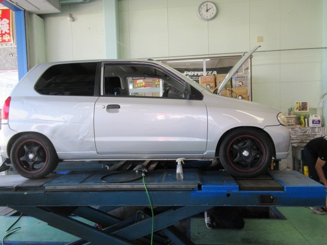 もう一台はZC33Sスイフトスポーツ奥様仕様です。お子様が中で眠っていますので、静かに点検進めて行きますね。