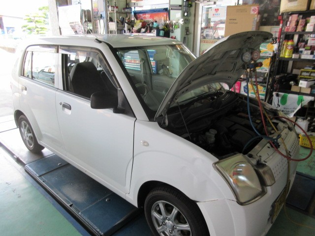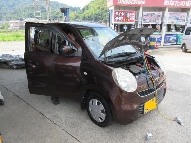 MRワゴンこの暑さでエアコンの効きが悪いとの事でACガス屋さんになってます。