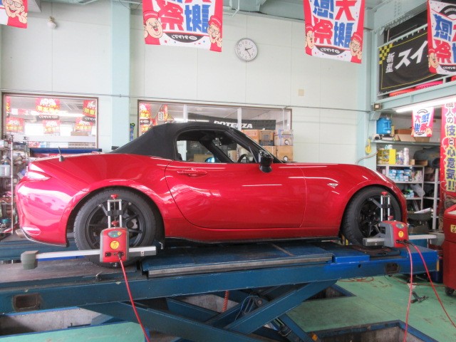 初めてのお客様、ND5Cロードスターのアライメント調整の依頼です。