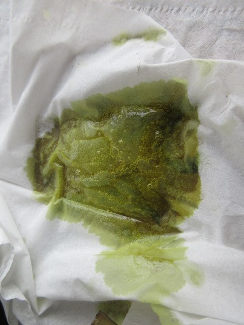 ひっくり返してオイルのチェックします。鉄粉とか破片は、見当たらないので、内部クラッシュはしていないようです。チョット色は悪いかな?