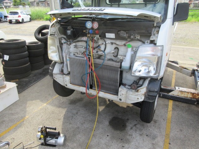 キャリートラックのACコンプレッサーが来たので、交換していきます