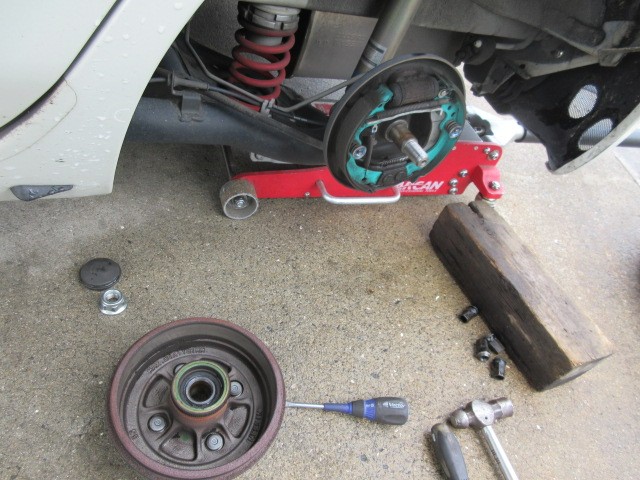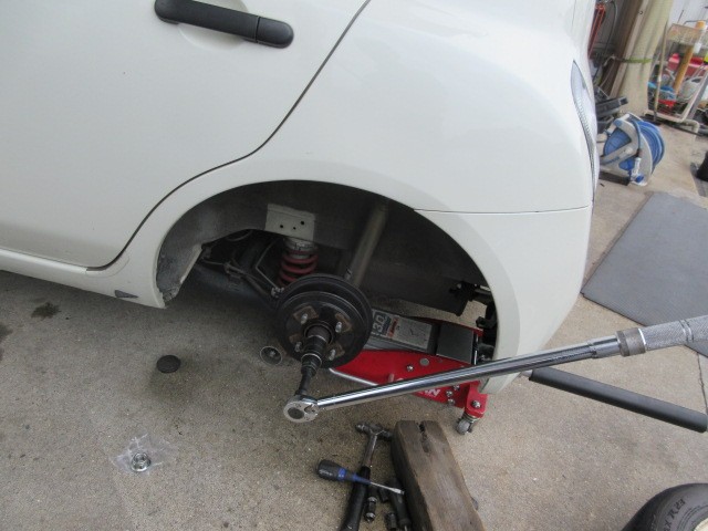 先日 継続検査と構造変更を済ませて来たマーチのハブベアリング交換です。