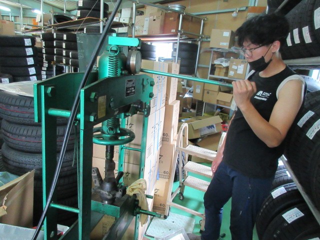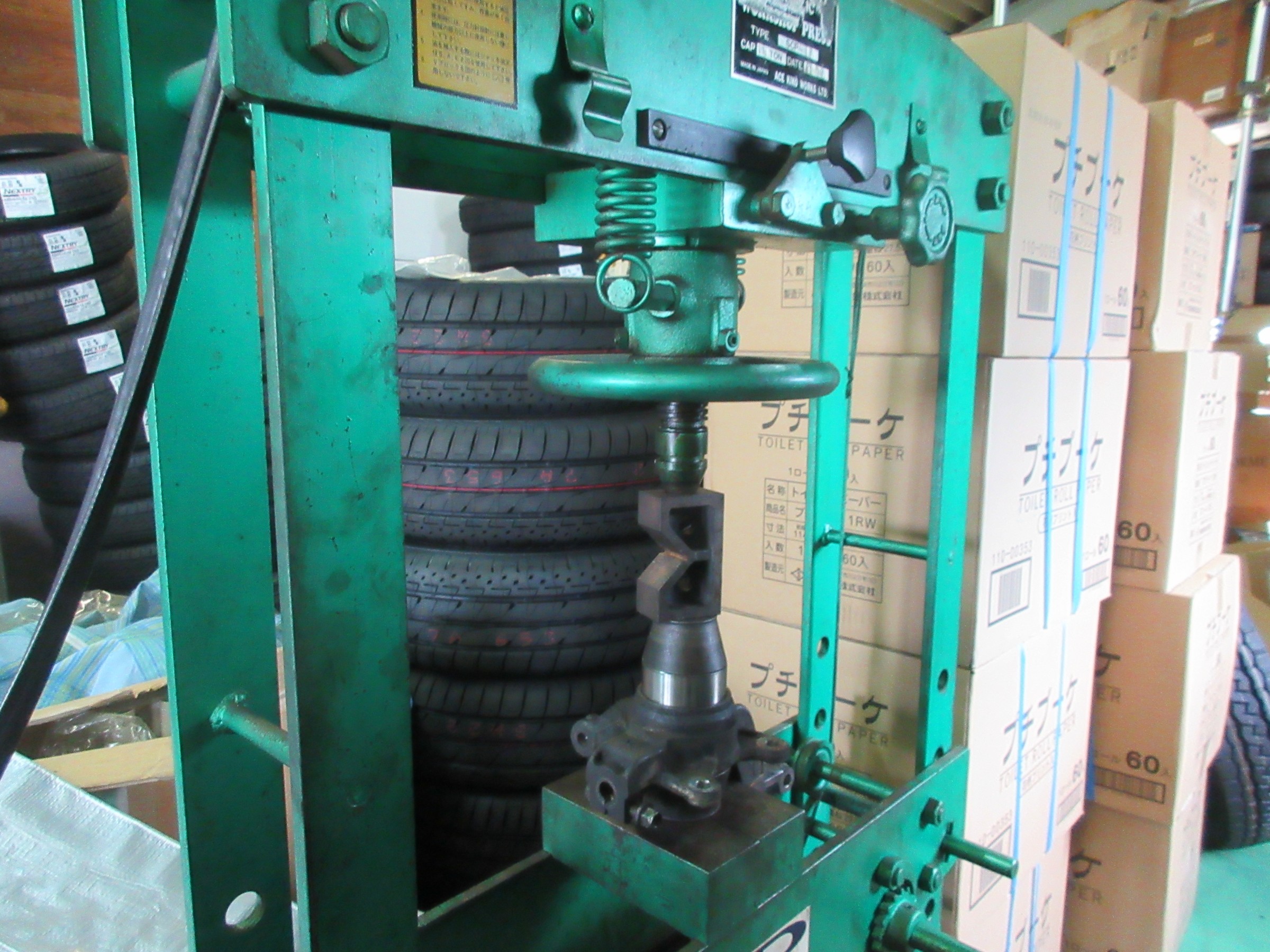油圧プレスで抜くのですが、置いて有る場所が、二階の倉庫で風通しの悪い所での作業です・・・