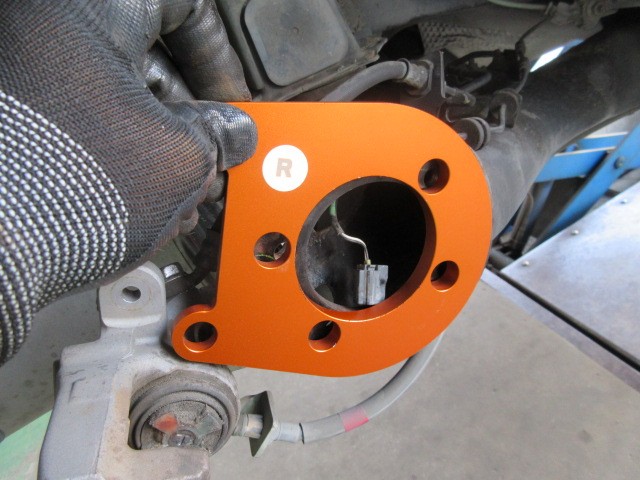 キャンバー角が付いたので、念願のワイドトレッドスペーサー取り付け作業