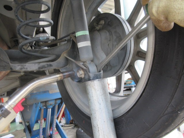 リアの右のショックの下端部のボルトが、ショックのカラーと固着して抜けて来ません最悪です。