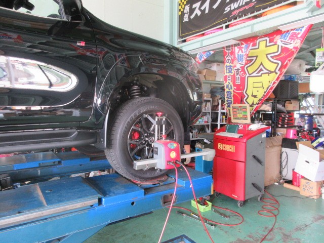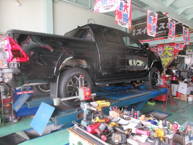 先日 車高調を組んだハイラックストラックのアライメント調整です。