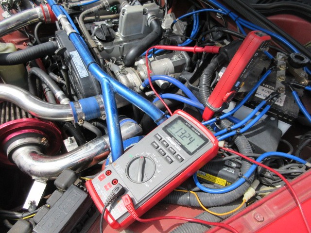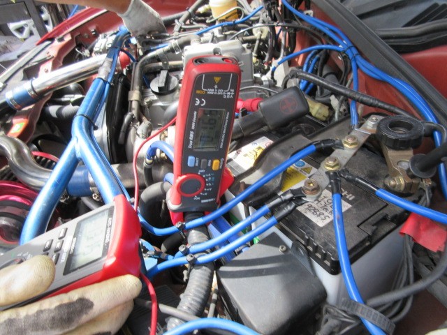一応 作動テストしときます。アイドリングでは、低くなりますね。エアコン入れると まだ下がります。