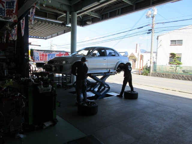 ダイちゃん知人のランサーエボリューションⅤお車高の微調整です。