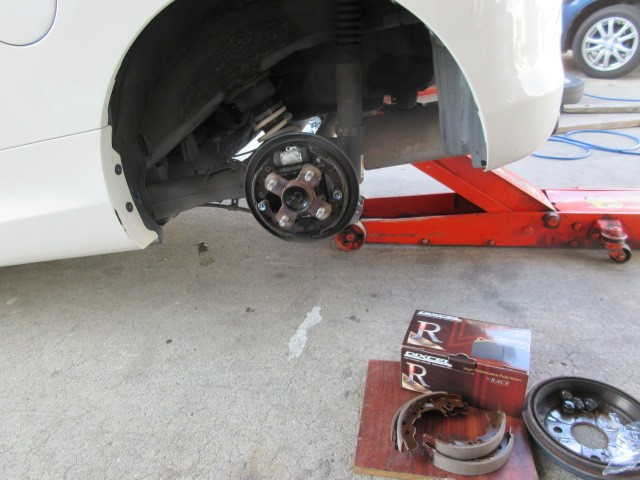 先日ブレーキの点検に来てくれたLA400Kコペンのリアブレーキライニングの交換です。
