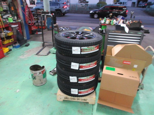 朝一からエブリィワゴンとムーブに預かっていたスタッドレスタイヤをセットして行きます。