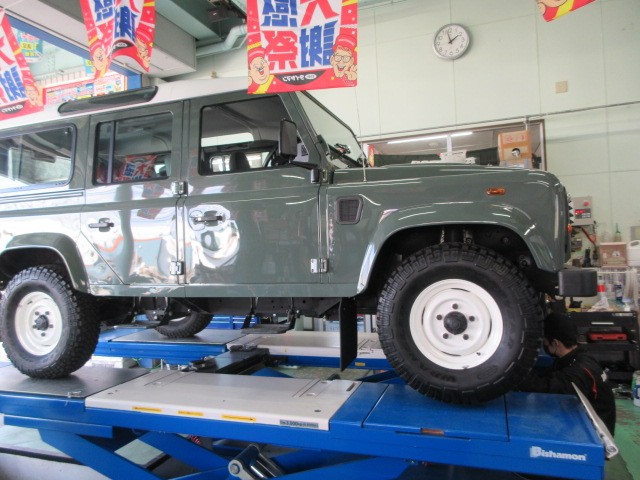 旧ランドローバーディフェンダー・・・今型もカッコいいですが、こちらは味が有っていいですね・・・