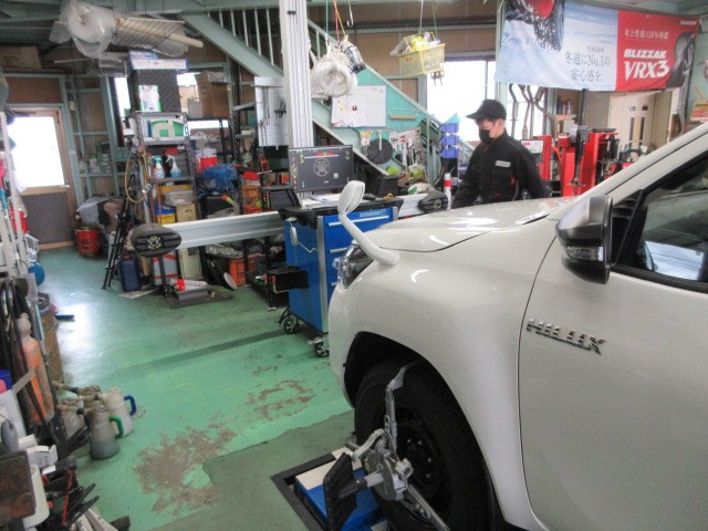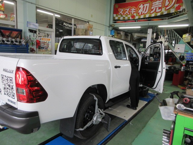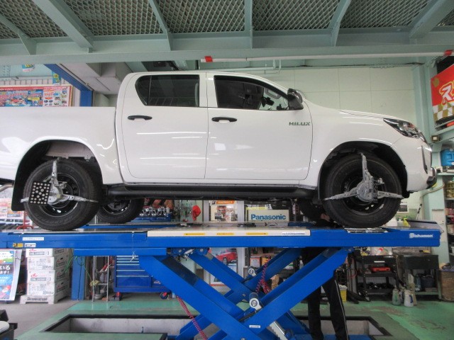 業者様からの依頼で、ハイラックストラックのアライメント調整です。