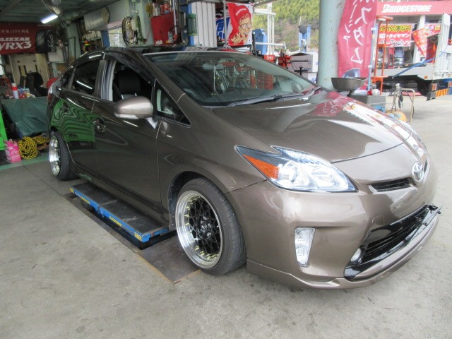 プリウスの車高調整です。かなり来てますね・・・