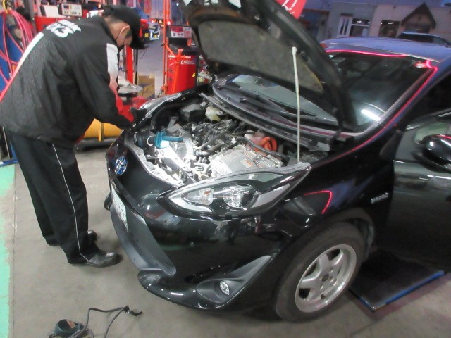 こちらは鈑金が上がって来たアクアにホーン取り付けます。