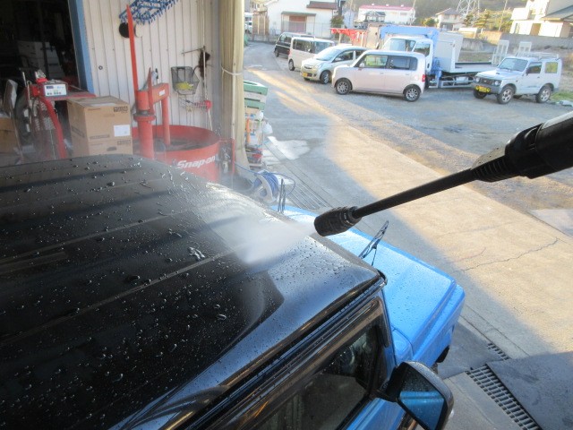 デモカー兼社長専用車のジムニーの洗車です。