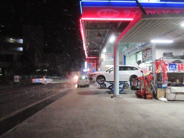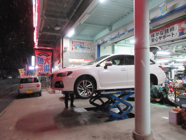 シャッター閉めようと思ったら滑り込みセーフでレボーグのスタッドレスタイヤ装着です。