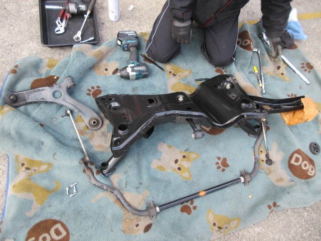 エンジンメンバーも交換しますが、スタビリンクも曲がっていました。