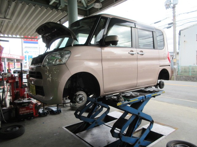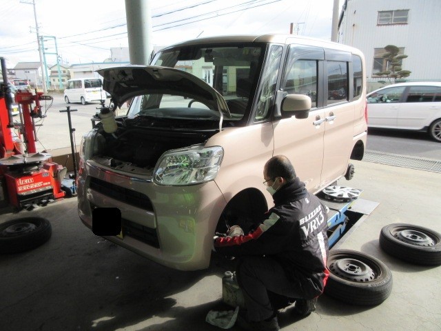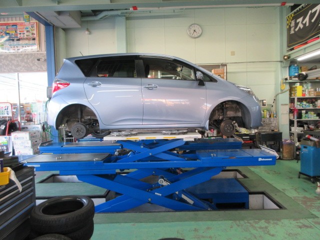 ボクの友人のラクティスのタイヤ交換です。遠方からのご来店です。