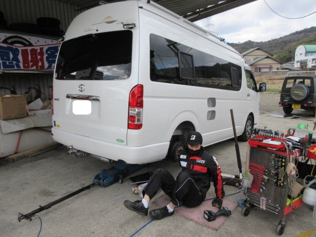 ハイエースはダウンブロックの交換です。低すぎたので1インチ上げます。