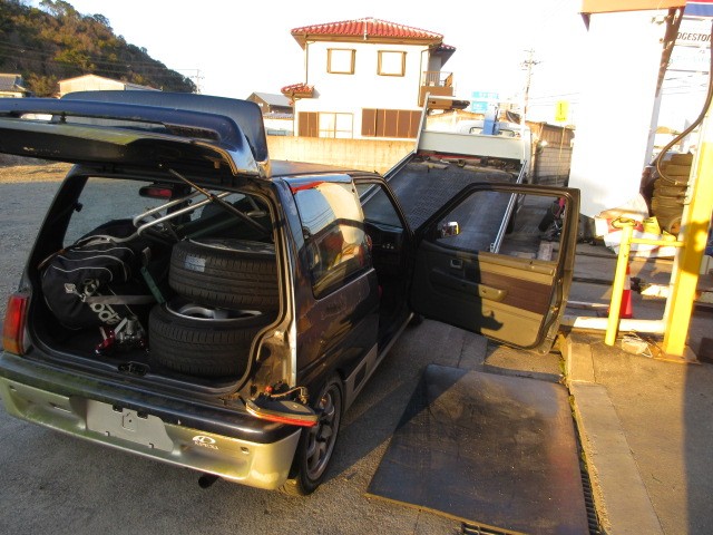 ワークスは、ナンバーが付いていないので積載車に積んで行きます。