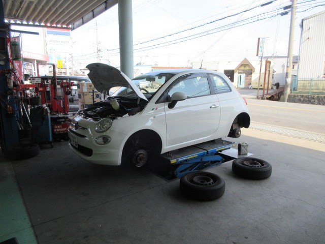 フィアット500の車検整備です。軽~く整備します。