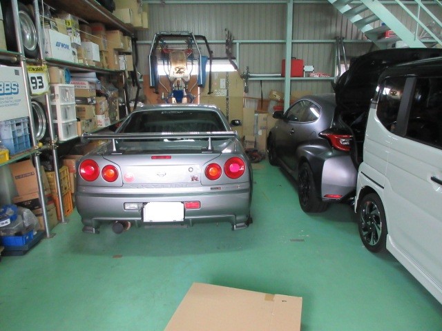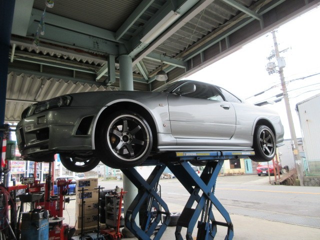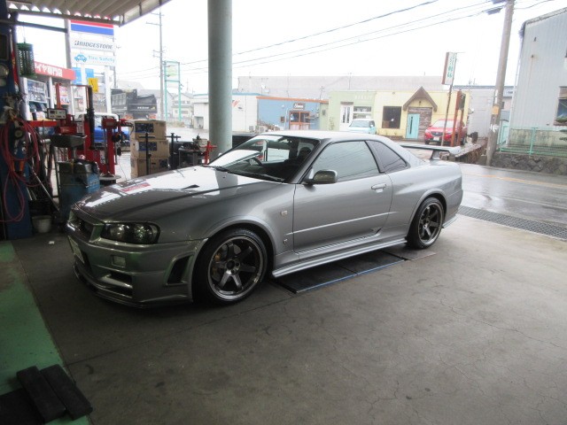 車検で預かっていた34GT-R VスペックⅡのホイール修理が完了したので作業再開します。