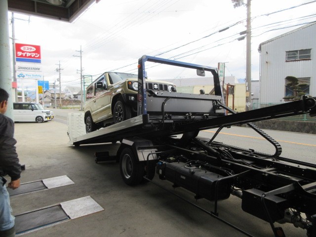 朝一から業者様からの依頼で、新車のJB64ジムニーに30mmアップスプリング&サイズアップタイヤ交換します。