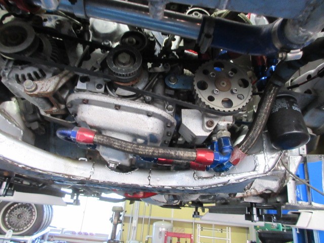 ドライサンプでエンジン位置が下がっているのでEXマニの逃がしの為にフレームカットしていますね・・・