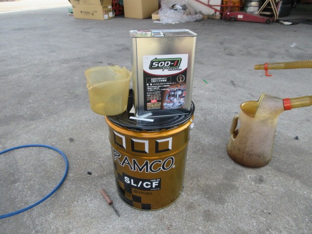 古い車なのでチョット硬めに10W40をチョイスで添加剤にSOD