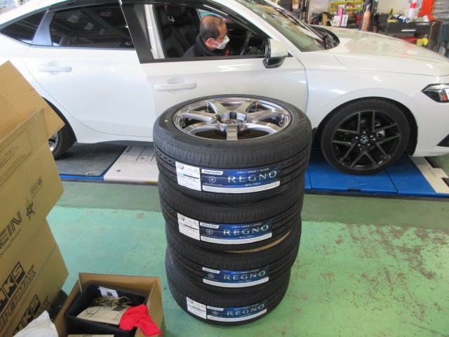 シビックさんにインチダウンでエンケイ PF07にレグノGR-XⅢ215/50R17を組ませて頂きます。