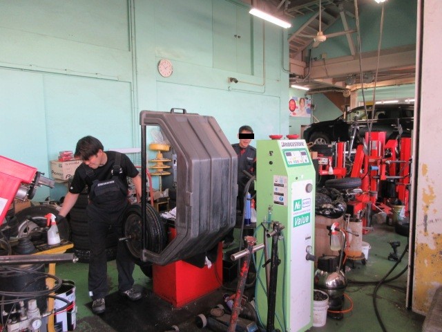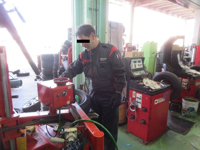用事で某タイヤマンに来ました。するといつもは居ない石井君を発見・・・作業をしていました。