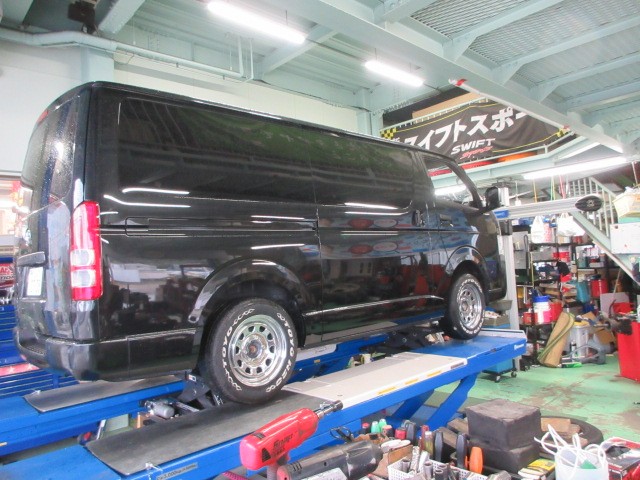 昨日 買い取って欲しいと持ち込まれたハイエースDXガソリン 2WD 20000kmの下廻りの点検です。