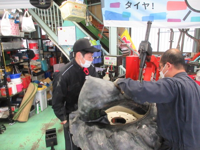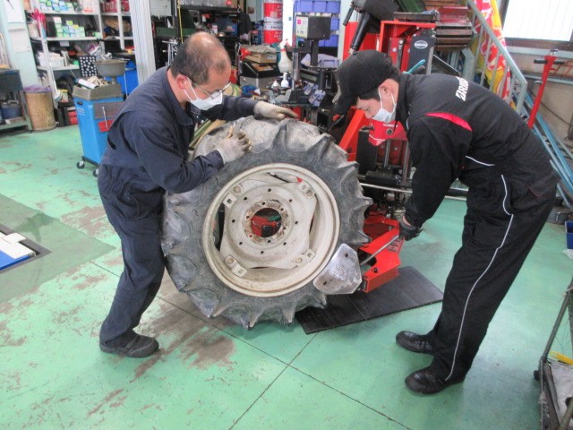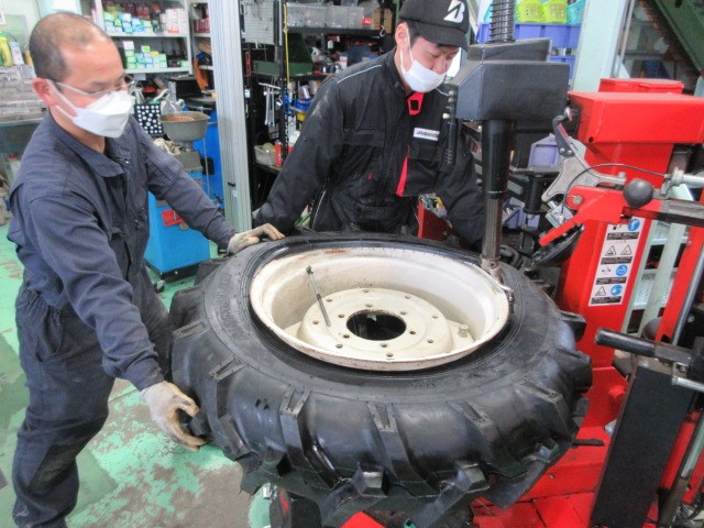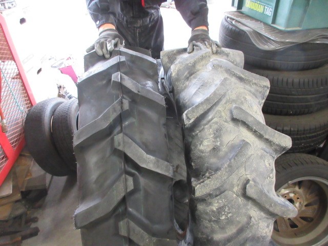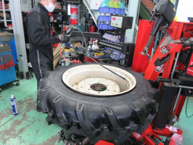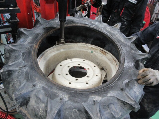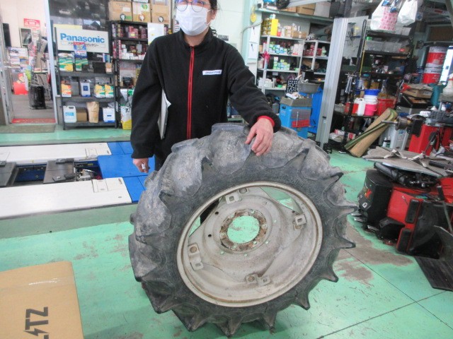 トラクターのタイヤ交換です。11.2-24てサイズで、直径112cmちょっと無理かも?