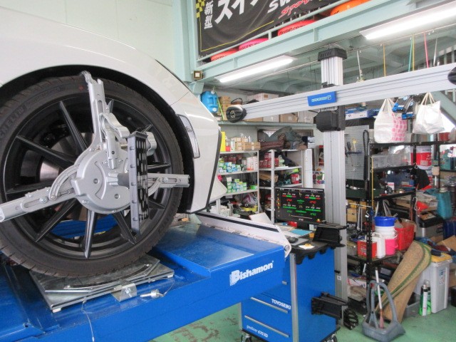 後はアライメント調整です。スペーサーに合わせてキャンバー調整致します。