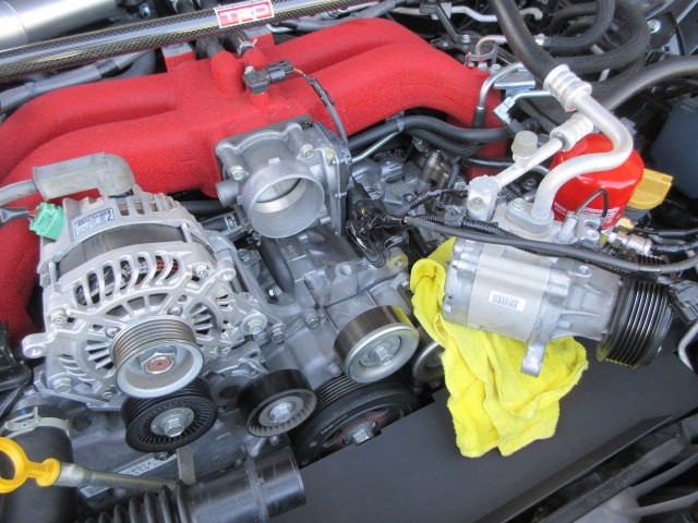 キャッチタンク取り付けにエアコンコンプレッサーを ずらさなければなりません