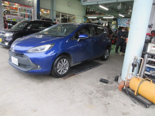 アクアのタイヤを夏タイヤに同時にホイールセットで装着です。