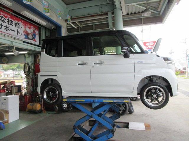 当店の最新のデモカー新型スペーシアカスタムにTE37KCRを装着致します。