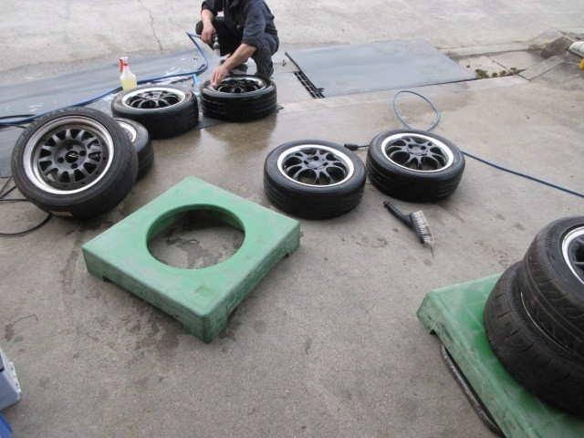 倉庫の片付けで、レースに使っていたホイールの洗浄と整理です。