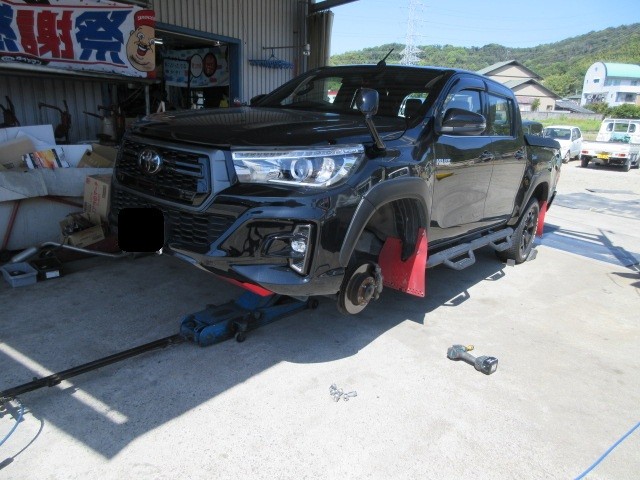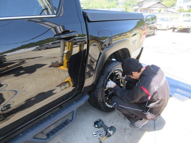業者様からの依頼でハイラックストラックのタイヤ交換です。