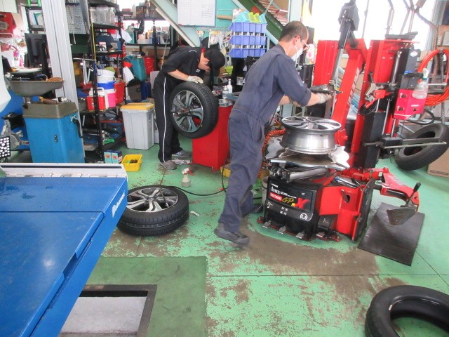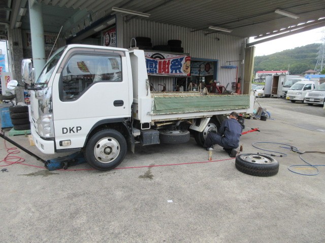 ダンプカーのタイヤ交換です。6本交換です。ありがとうございます。