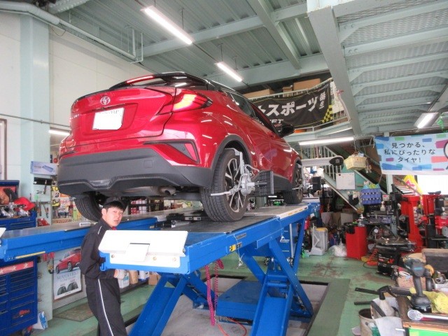 業者様からの依頼で、事故修理後のアライメント調整致します。