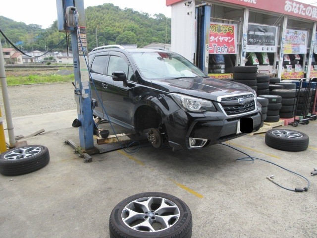 フォレスターの車検整備です。雨が~降って来た・・・・ストップ
