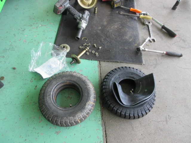 農機のタイヤ交換です。小さいのに手間が掛かります。
