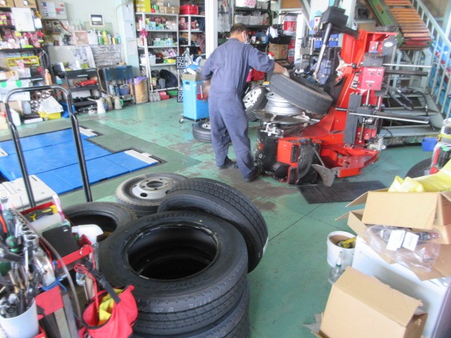 トラックのタイヤ交換です。