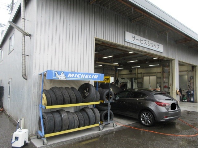 通常 外のリフトで整備するのですが、大雨なので、中のリフト使います。リフトの順番待ちです。