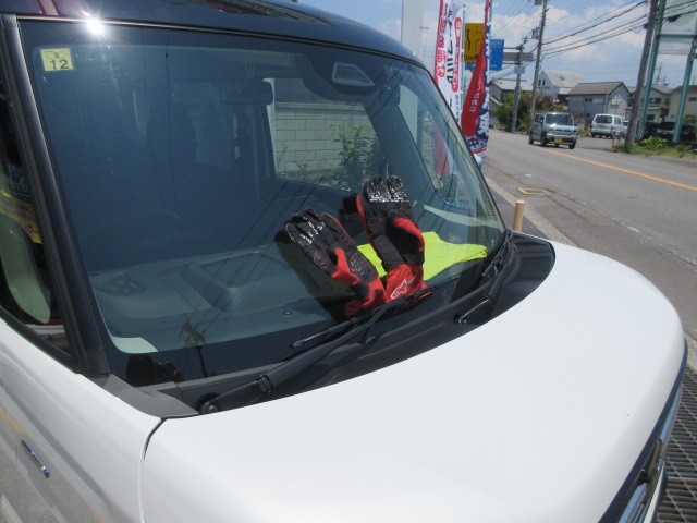 ヘルメットとグローブを天日干ししときます。