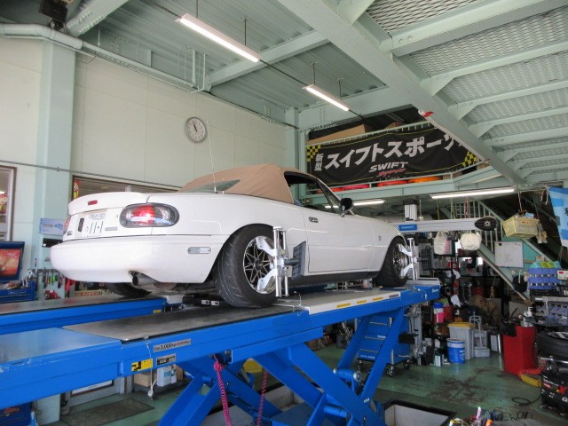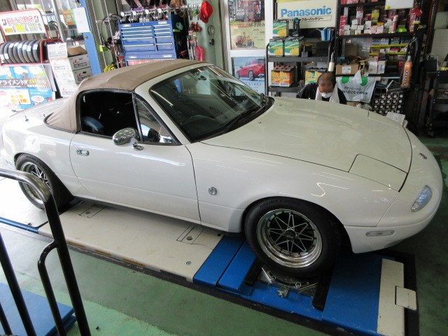 朝一からNA8Cロードスターのアライメント調整致します。