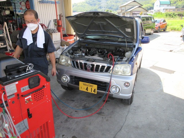 次は、テリオスキッドもエアコンガスクリーニング致します。