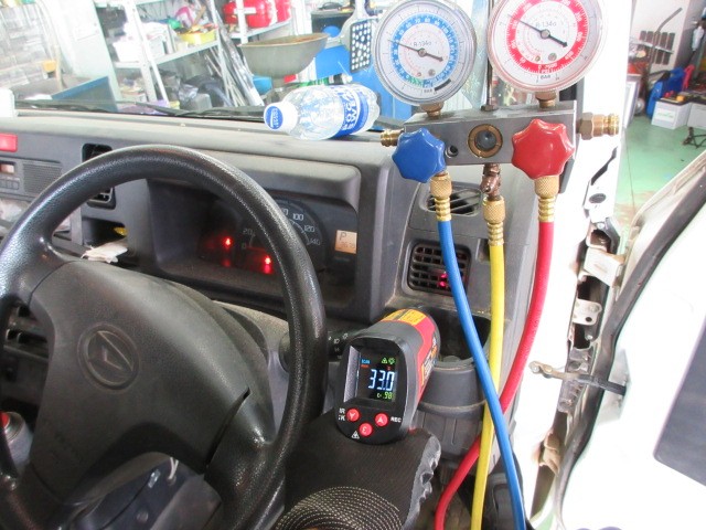 交換中に「エアコン効かんねん・・・」と相談され一度マニホールド繋いでみます。
