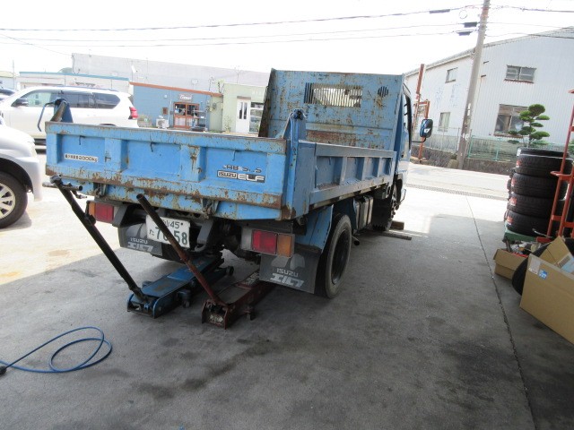 ダンプカーのタイヤ交換です。6本付いています。ラッキー嬉しですね。